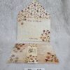 This card has a very elegant floral design which looks very attractive. This card has a tracing paper also known as butter paper and vellum paper with floral print on it . This card has 2 floral insert tied with a tussle. It has a box style cover .
