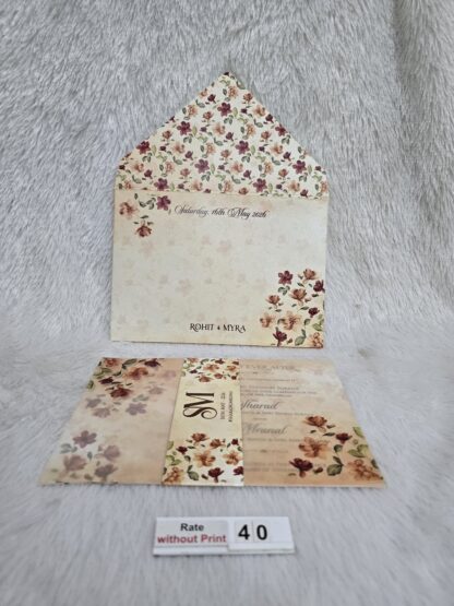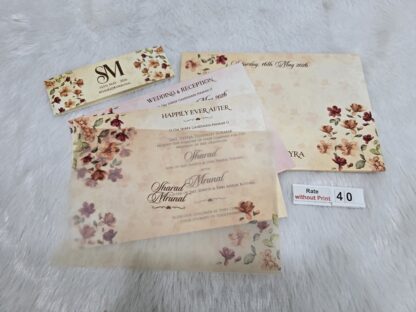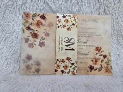 Floral design on tracing paper,butter paper, vellum paper invitation card with 2 inserts and box cover.