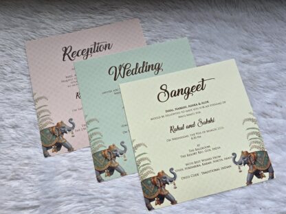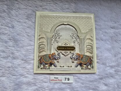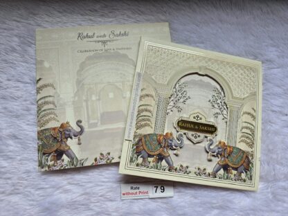 premium hardbound wedding invitation card with elephant print and 3D popup effect with Box cover and 2 inserts.