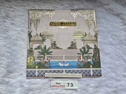 premium hardbound wedding invitation card with elephant print and 3D popup effect with Box cover and 2 inserts.