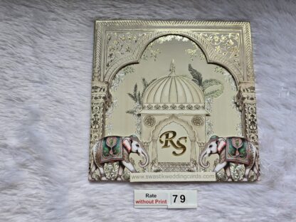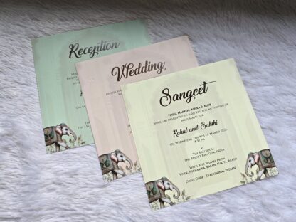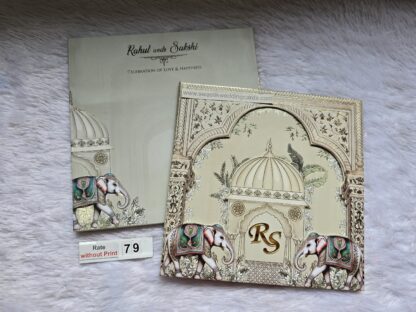 premium hardbound wedding invitation card with elephant print and 3D popup effect with Box cover and 2 inserts.